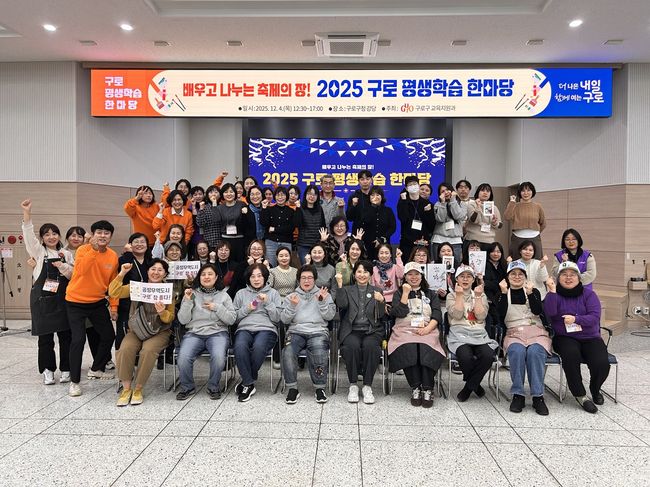 지난해 열린 `2025 구로 평생학습 한마당` 현장 단체사진.서울 구로구(구청장 장인홍)는 교육부 국립특수교육원이 주관한 공모사업에서 ‘장애인 평생학습도시’로 2026년 신규 지정됐다고 4일 밝혔다. 이번 선정은 구로구 최초 사례로, 구는 국비 3,600만 원을 확보해 장애인 평생학습 정책 추진에 활용할 계획이다.