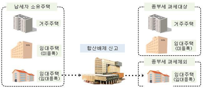 합산배제는 일정 요건을 충족한 임대주택, 사원용주택, 멸실예정주택, 주택신축용 토지 등이 대상이다. 예컨대 임대주택은 지자체 및 세무서 등록, 의무임대기간(6년·10년 등)과 임대료 증액 상한(5%) 요건을 갖춰야 하며, 사원용주택은 공시가격 6억 원 이하 또는 85㎡ 이하 등 조건을 충족해야 한다.