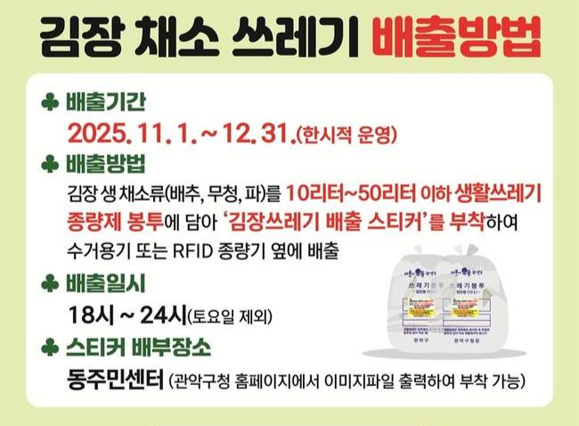 관악구, 김장철 쓰레기 특별처리 기간 운영…분리배출 요령 꼭 지켜주세요