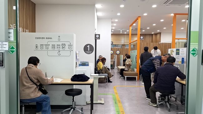구로구보건소 건강관리센터를 방문한 주민들이 대사증후군 검진과 건강상담을 위해 대기하거나 설문지를 작성하고 있다.서울 구로구(구청장 장인홍)는 1일부터 서울시가 시행 중인 ‘대사챌린지9988’ 사업과 연계해 대사증후군 관리 사업을 확대한다고 밝혔다.